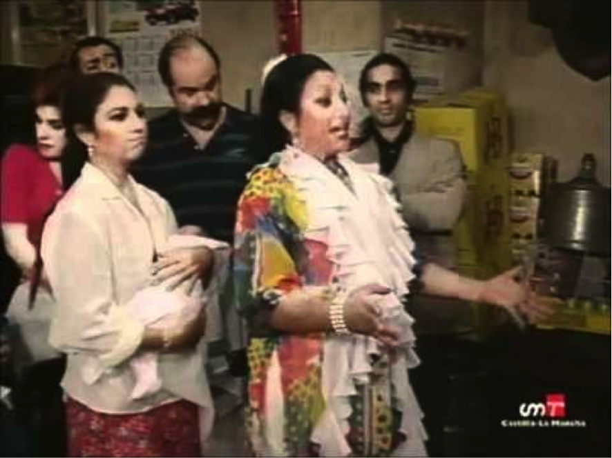 Los ladrones van a la oficina (1993-1996) fue otra serie española importante ("permitía ver trabajar juntos a 5 de los mejores actores españoles del siglo XX"), que contó con sonadas participaciones de la familia González Flores caracterizados como gitanos. En la foto, entre otros, los personajes de Joselito El Piga (Antonio Flores), su esposa (Lolita) y su suegra (Lola Flores) https://es.wikipedia.org/wiki/Los_ladrones_van_a_la_oficina