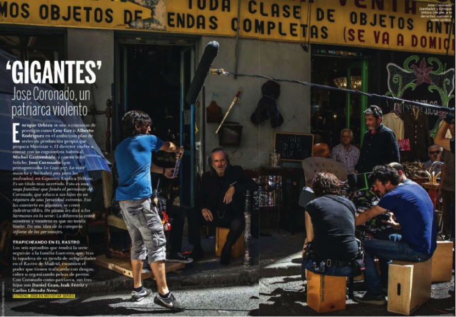En esta búsqueda de contenidos de temática gitana en las series de televisión, nos topamos también con una que podríamos parafrasear como “la que se avecina" ya que se está rodando estos meses y está previsto su estreno en octubre de 2018: Gigantes, dirigida por Enrique Urbizu para Movistar+, protagonizada por José Coronado. Sin entrar a cuestionar su calidad, y menos sin verla, dado el tema y la forma en que se anuncia nos preocupa seriamente el tratamiento que pueda dar de la imagen de la comunidad gitana (en este caso de gitanos del centro de Madrid y "entornos chabolistas"). Este reportaje de la Cadena Ser da algunas pistas http://cadenaser.com/programa/2017/06/02/la_script/1496438102_369173.html o el titular de la revista Fotogramas (“Gigantes. José Coronado, un patriarca violento”) o el primer trailer.