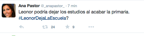 - Ana Pastor revoluciona Twitter con el hashtah #LeonorDejaLaEscuela. El Economista