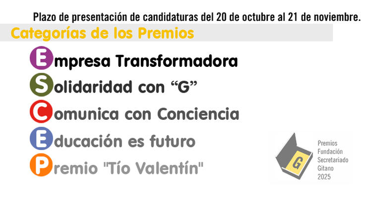 Abierto el plazo de presentación de candidaturas para los “Premios Fundación Secretariado Gitano 2025” [editar]