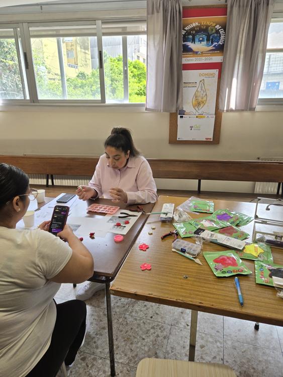 Durante una de las últimas sesiones del programa Calí se llevó a cabo una actividad creativa centrada en la elaboración de pendientes con arcilla flexible, un material accesible que puede encontrarse fácilmente en bazares por un precio reducido.