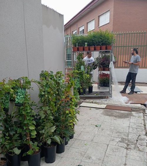 Y en la práctica, han terminado la obra de mejora de las zonas verdes de la sede central y de Madrid en el barrio de Vallecas de la Fundación Secretariado Gitano.