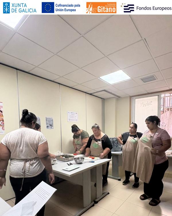 Este pasado luns organizouse unha clase práctica de alimentación saudable dentro do programa “Rede galega Da Promoción Da Saúde Na Poboación Xitana ”, coa colaboración da cociñeira De Cousiñas. O obxectivo foi ensinar a preparar receitas equilibradas, reducir graxas pouco saudables e potenciar alimentos ricos en nutrientes. As participantes aprenderon a diferenciar graxas boas e malas, a importancia dos nutrientes esenciais e técnicas para elaborar pratos sinxelos e económicos. A iniciativa busca promover hábitos saudables para mellorar a súa saúde e a das súas familias