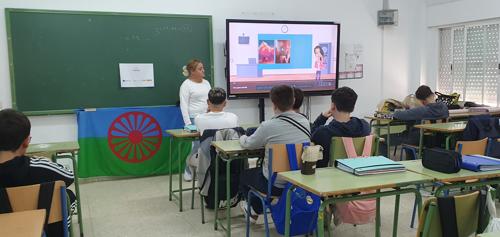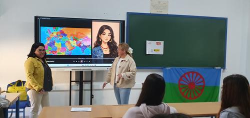 Continuando con el tour intensivo de actividades relacionadas con la conmemoración del día 8 de abril como Día Internacional del Pueblo Gitano, integrantes de FSG La Línea, concretamente la profe de aula Promociona y Orientadora de Postobligatorios, Marisa y la Coordinadora de Voluntariado, Ángeles, han acudido a las instalaciones del Instituto Virgen de la Esperanza de La Línea para impartir talleres a alumnado de Secundaria y Bachillerato sobre la historia del pueblo gitano, sus costumbres y cultura y su aportación a nuestra sociedad actual.