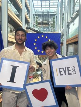 Juan de Madrid e Isa de Murcia, del Grupo de Facilitadores, han participado junto a miles de jóvenes de toda la UE en el Evento Europeo de la Juventud (EYE) para compartir ideas con responsables políticos sobre el futuro de Europa.