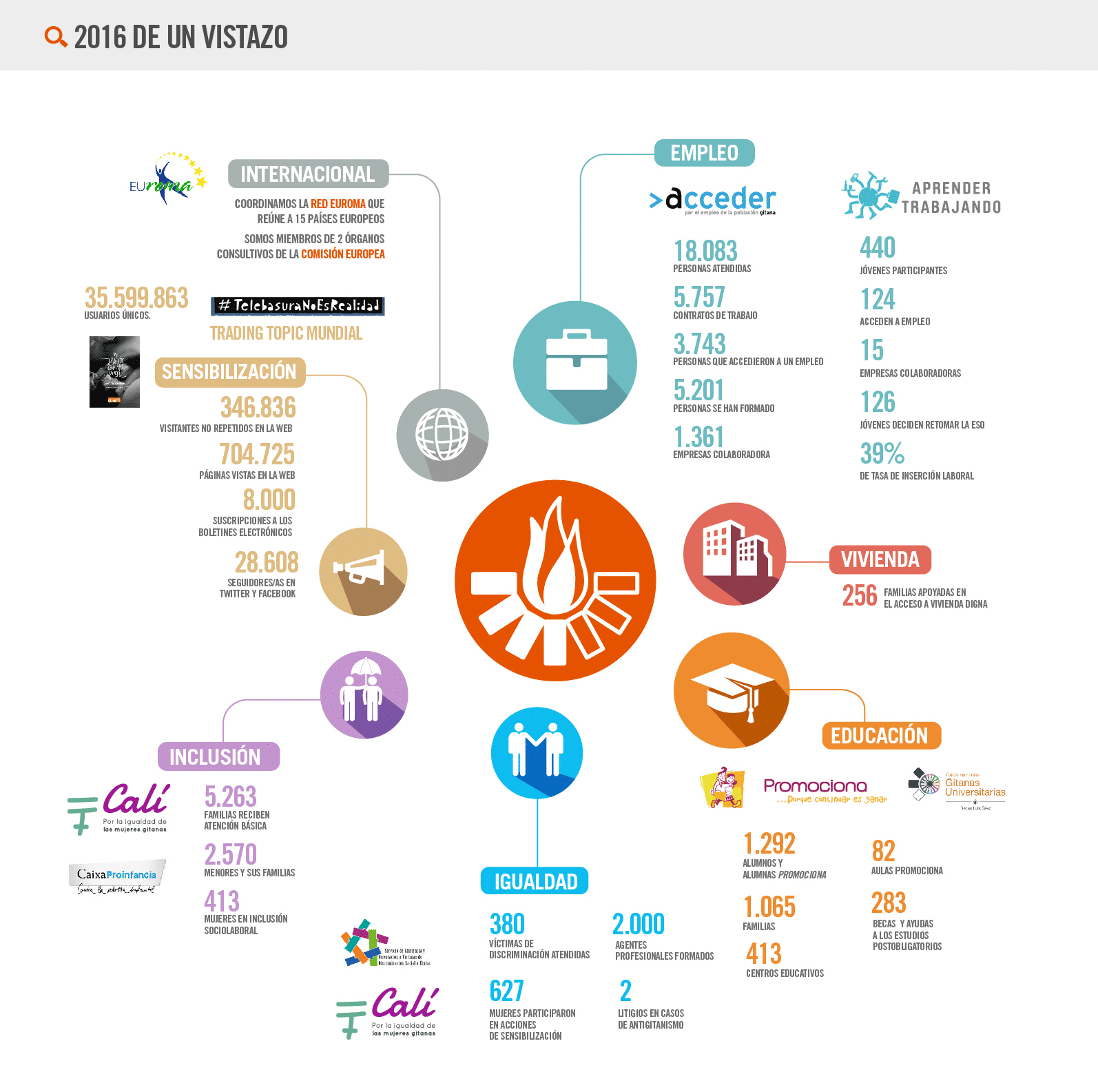 En 2016 el programa de formación profesional y empleo Acceder se ha consolidado como la iniciativa europea más eficaz y de mayor impacto de inclusión sociolaboral dirigida a la población gitana. Sólo en 2016 atendió a 18.083 personas de las que 3.743 consiguieron un empleo. Además, se han firmado 5.757contratos de trabajo. Para ello la FSG ha colaborado con más de 1.361 empresas y se han puesto en marcha 931 acciones formativas que han llegado a 5.201 personas.