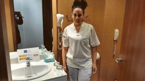 Dos de nuestras participantes del programa ACCEDER, que están realizando prácticas no laborables para mejorar sus competencias profesionales en dos sectores profesionales muy diferentes; Una de ellas, como camarera de pisos en Hoteles AH Ágora Cáceres mientras que otra se encarga de dar atención al público en la Pastelería Coffee Bakery.