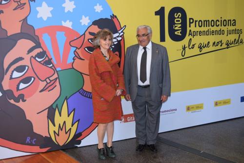 La Fundación Secretariado Gitano (FSG) ha celebrado hoy 21 de octubre un acto en Madrid (La Nave de Villaverde) para compartir y celebrar con el alumnado, sus familias, los centros educativos y las administraciones públicas los resultados y aprendizajes de esta década. Un programa cofinanciado desde su inicio por el Fondo Social Europeo y el Ministerio de Sanidad, Consumo y Bienestar Social, a través del IRPF, así como administraciones y entidades privadas a nivel autonómico y local. El acto ha estado conducido por el periodista José Yélamo y Ricardo Cavolo ha sido el artista que ha puesto imagen a los 10 años Promociona.