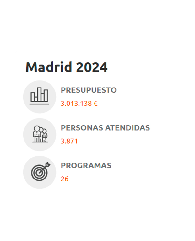 Durante el 2024 se han desarrollado los principales Programas como Acceder, Promociona y el Programa Calí. Nuestros principales cofinanciadores son el Ayto de Madrid, la Comunidad de Madrid a través de convocatoria IRPF y la Fundación la Caixa.