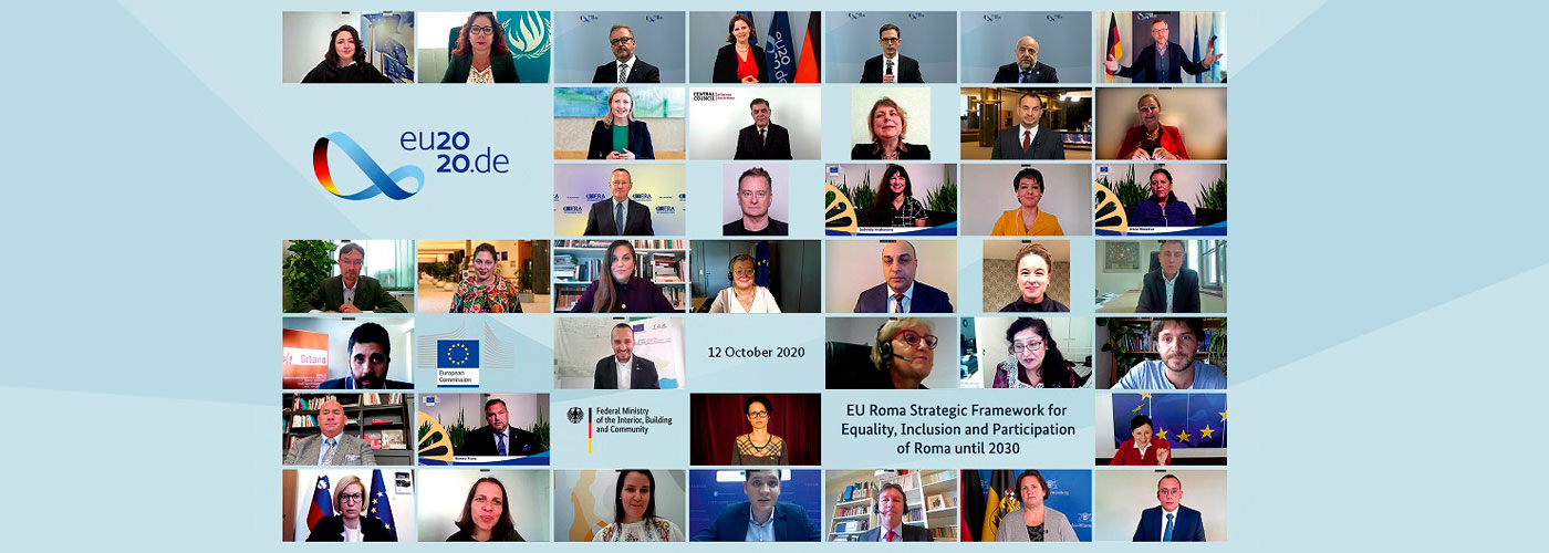 Hemos continuado muy presentes en los eventos europeos más relevantes del año (online), como el Evento de alto nivel de la Presidencia alemana del Consejo Europeo donde presentamos nuestro estudio sobre COVID-19 y población gitana. Y hemos seguido participando como miembros en dos grupos consultivos de la Comisión Europea: sobre las políticas dirigidas a la población gitana (DG Justicia) y sobre Fondos EIE (DG Política Regional).
