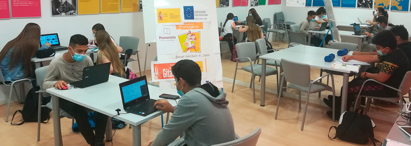 Con el programa Promociona+ trabajamos para que el alumnado gitano matriculado en estudios post-obligatorios (Ciclos Formativos de Grado Medio y Superior, Bachillerato y Estudios Universitarios) para que finalice sus estudios y obtenga una titulación.