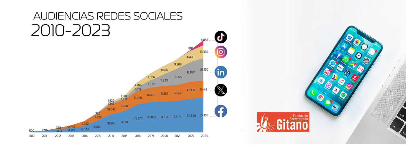 La difusión de nuestro trabajo y de temas de interés para la comunidad gitana ha centrado nuestra comunicación, con una especial incidencia en la reclamación de la #EquidadEducativa. Hemos logrado impactar, al menos, en 66 medios de comunicación con noticias que suponen más 34 millones de audiencia acumulada. En 2023 lanzamos 33 comunicados y notas de prensa, difundido informaciones a través de nuestra web corporativa –que sumó más de 273.000 visitantes únicos– y de nuestros boletines digitales, que cuentan con 10.000 suscriptores. Gestionamos redes sociales a nivel estatal en Facebook, Twitter, Instagram, LinkedIn, YouTube y TikTok en las que, en 2023, alcanzamos cerca de 100.000 seguidores.