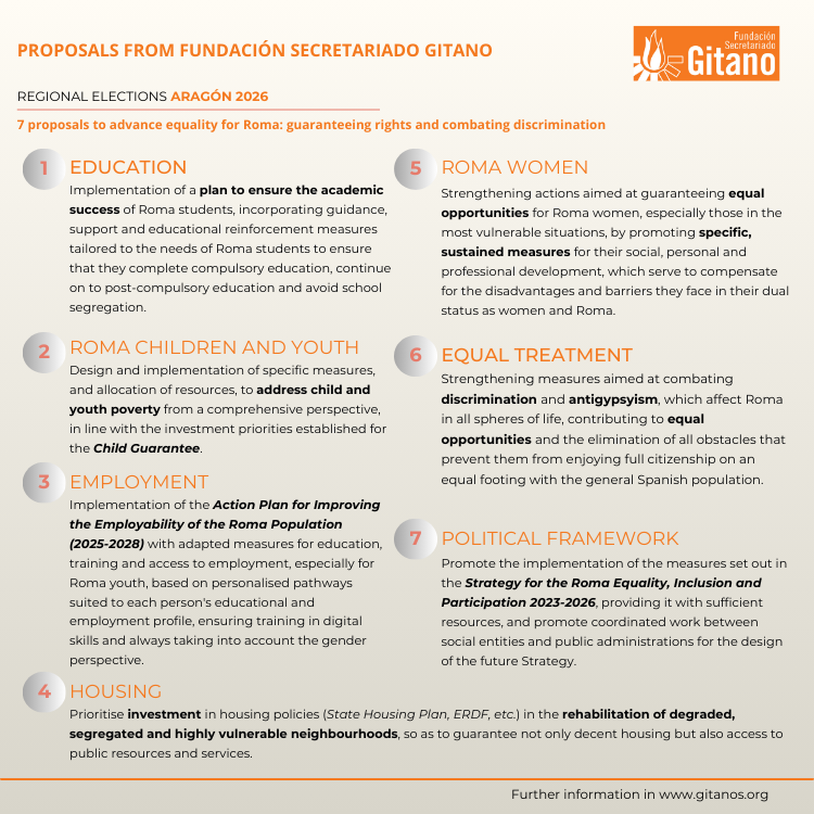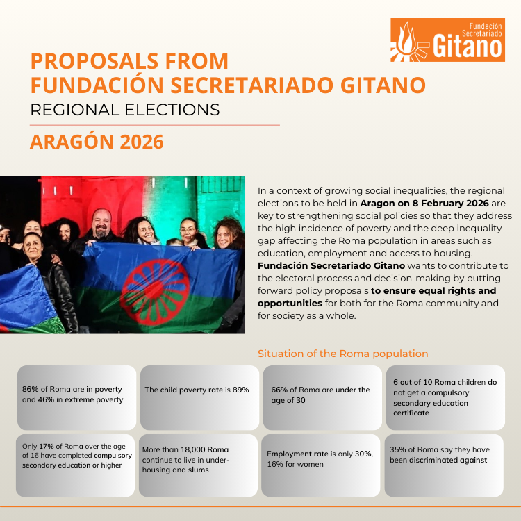During the coming months, elections will be held in different Spanish regions: Extremadura, Aragon and Castile and Leon. Here we present our proposals, which we will make available to the different candidacies of the political parties, to advance the equality of Roma people within the framework of guaranteeing social rights, combating discrimination and promoting recognition and participation.